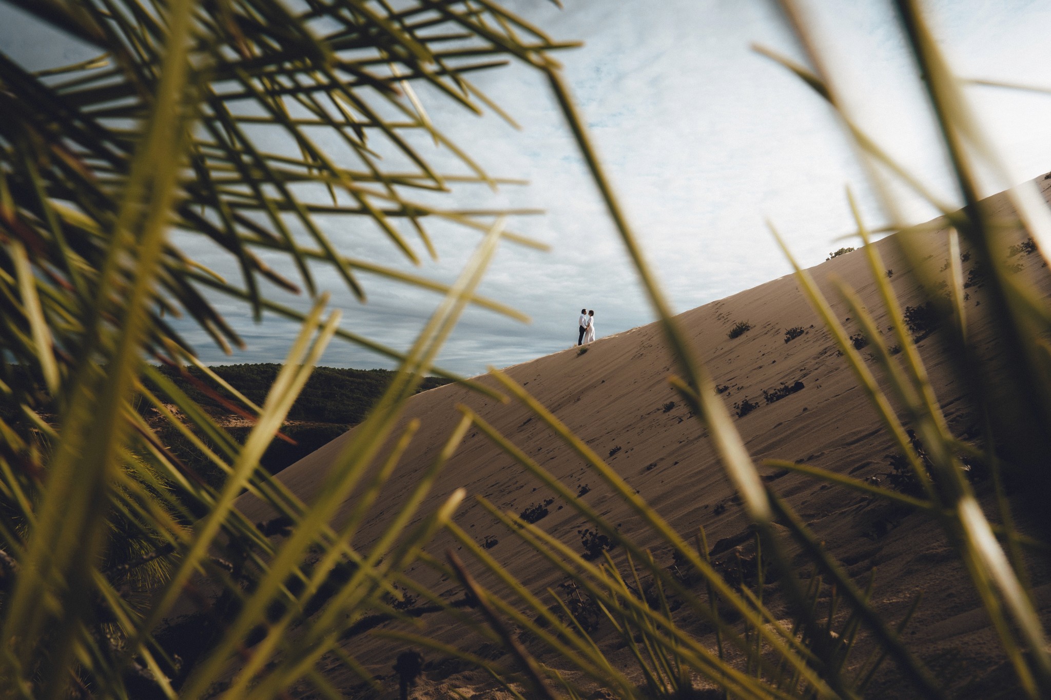 Du côté de Biscarrosse ou Mimizan, les lacs offrent une ambiance plus douce que l’océan, souvent avec moins de vent. C’est une option très confortable pour des photos de couple.